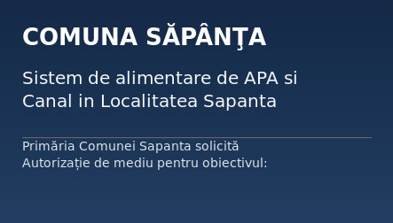 Primăria Comunei Sapanta solicită Autorizație de mediu pentru obiectivul: SISTEM...