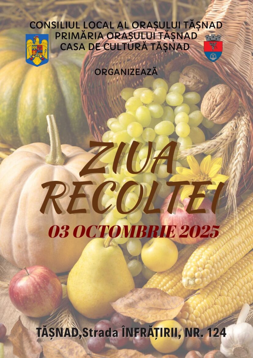 Orașul Tășnad, Satu Mare, se pregătește să îmbrace straie de sărbătoare! În data de 3 octombrie 2025, pe Strada Înrăţirii nr. 124, locuitorii și oaspeții orașului sunt invitați să participe la Ziua Recoltei, o manifestare tradițională organizată de Primăria Orașului Tășnad, în colaborare cu Consiliul Local și Casa de Cultură Tășnad. Evenimentul promite o zi plină de culoare, emoție și recunoștință, în care hărnicia gospodarilor va fi pusă la loc […]