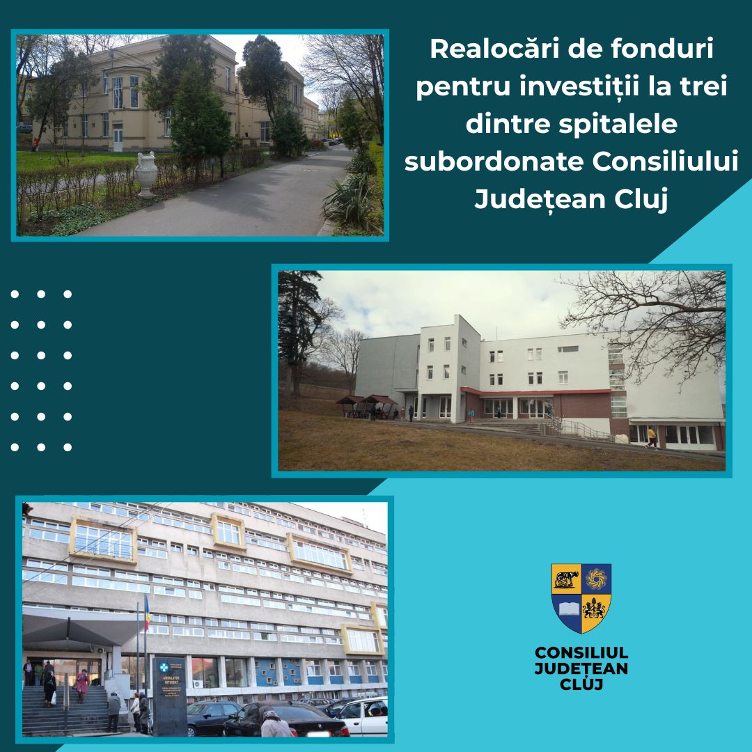 Realocări de fonduri pentru investiții la trei dintre spitalele subordonate Consiliului Județean Cluj!