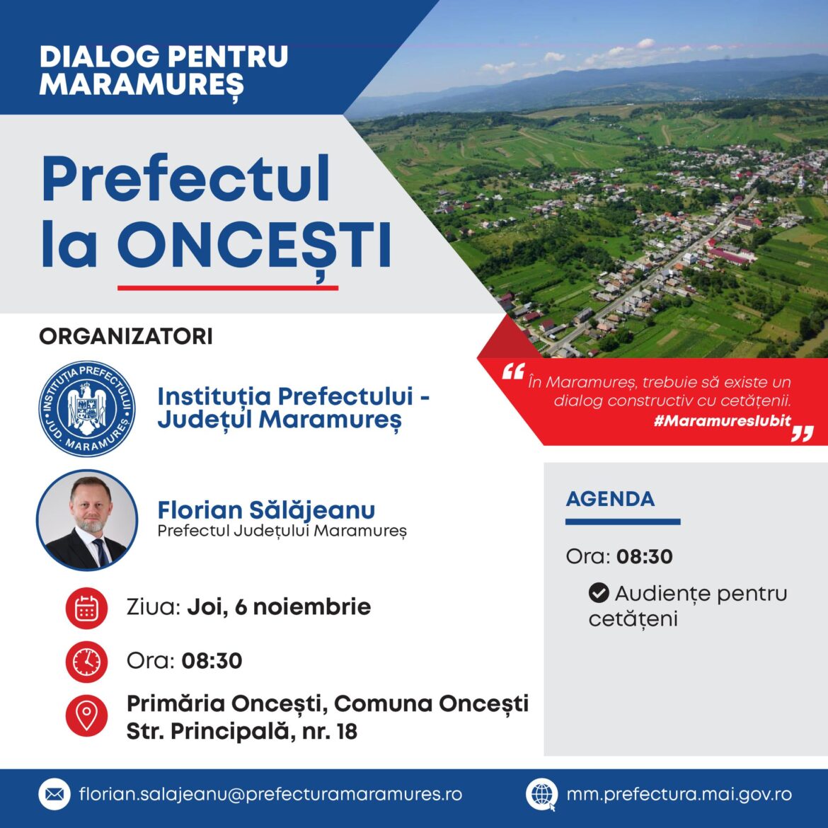 Prefectul Județului Maramureș, Florian Sălăjeanu, va acorda audiențe cetățenilor comunei Oncești, joi, 6 noiembrie!