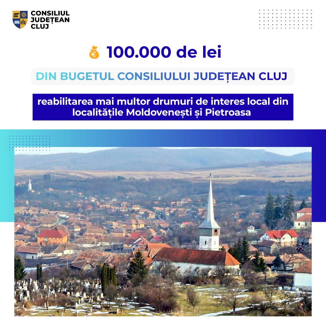 Investiție județeană pentru infrastructura locală: Consiliul Județean Cluj alocă 100.000 de lei pentru reparații urgente la drumurile comunale din Moldovenești și Pietroasa!