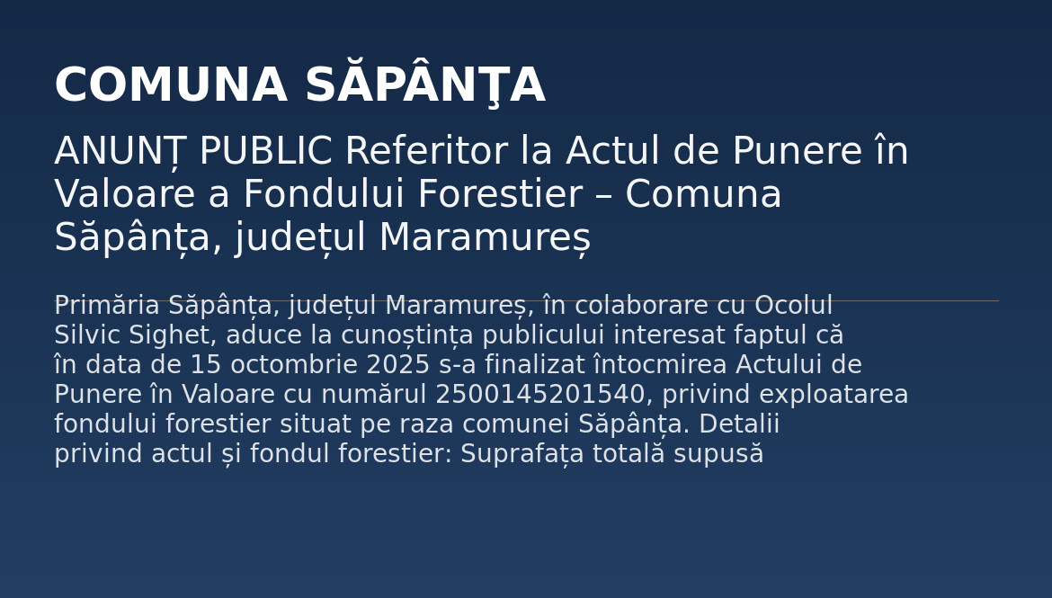 ANUNȚ PUBLIC Referitor la Actul de Punere în Valoare a Fondului Forestier – Comuna Săpânța, județul Maramureș