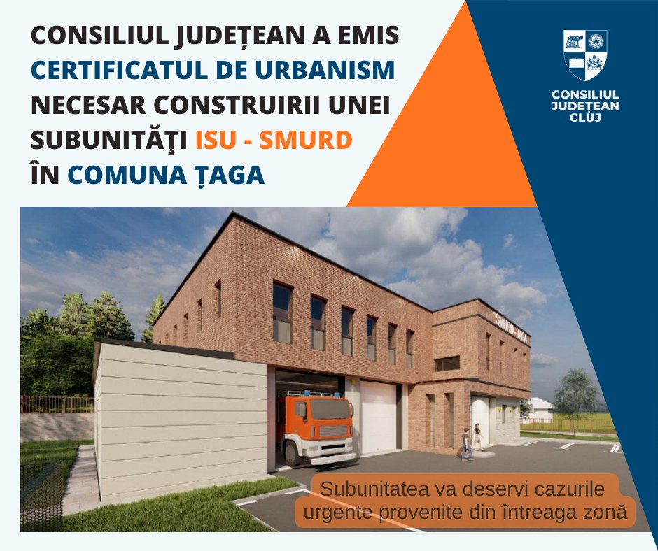 Consiliul Județean Cluj a emis certificatul de urbanism pentru construirea unei noi subunități ISU–SMURD în comuna Țaga!