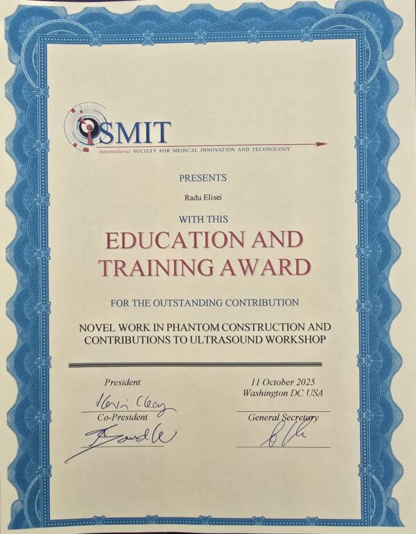 „Bistrița are medici de elită!Felicitări Dr. Radu Elisei, medic primar Chirurgie Generală în cadrul Spitalului Clinic Județean de Urgență Bistrița, pentru activitatea sa remarcabilă în cadrul Congresului iSMIT – International Society for Medical Innovation and Technology, desfășurat la Washington D.C., Statele Unite ale Americii.Dr. Elisei a reprezentat cu cinste comunitatea medicală română și bistrițeană deopotrivă, fiind trainer în cadrul workshopului de biopsii ecoghidate și chairman al uneia dintre sesiunile congresului.De asemenea, a avut bucuria de a se reîntâlni cu unul dintre mentorii săi, Dr. Amir Szold (Tel Aviv, Israel), un nume de referință în chirurgia minim invazivă.Astfel de performanțe ne arată că la Bistrița avem profesioniști de excepție, dedicați progresului și inovației în medicină.Felicitări, domnule doctor, pentru contribuția adusă prestigiului spitalului și al orașului nostru!”, a transmis primarul Gabriel Lazany.