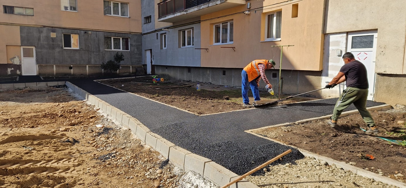 Deja, aleile pietonale au fost asfaltate parțial.