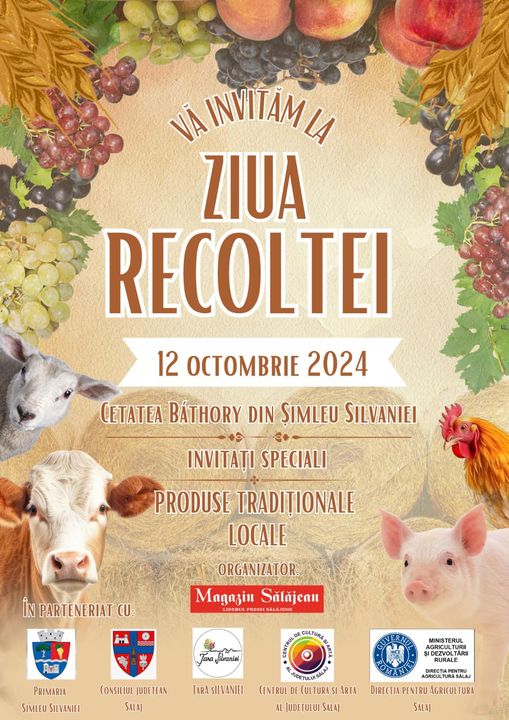 Ziua Recoltei, un eveniment care va aduce în fața publicului producători locali de legume, fructe, carne, vin, palică dar și tradiții autohtone. Eveniment oragnizat de Cotidianul Magazin Sălăjean în parteneriat cu Primăria Șimleu Silvaniei, Consiliul Județean Sălaj, Direcția Agricolă Sălaj, Asociația – Țara Silvaniei – și Centru de Cultură ți Artă al Județului Sălaj și va avea loc pe 12 Octombrie, la Cetatea Báthory, din Șimleu Silvaniei.