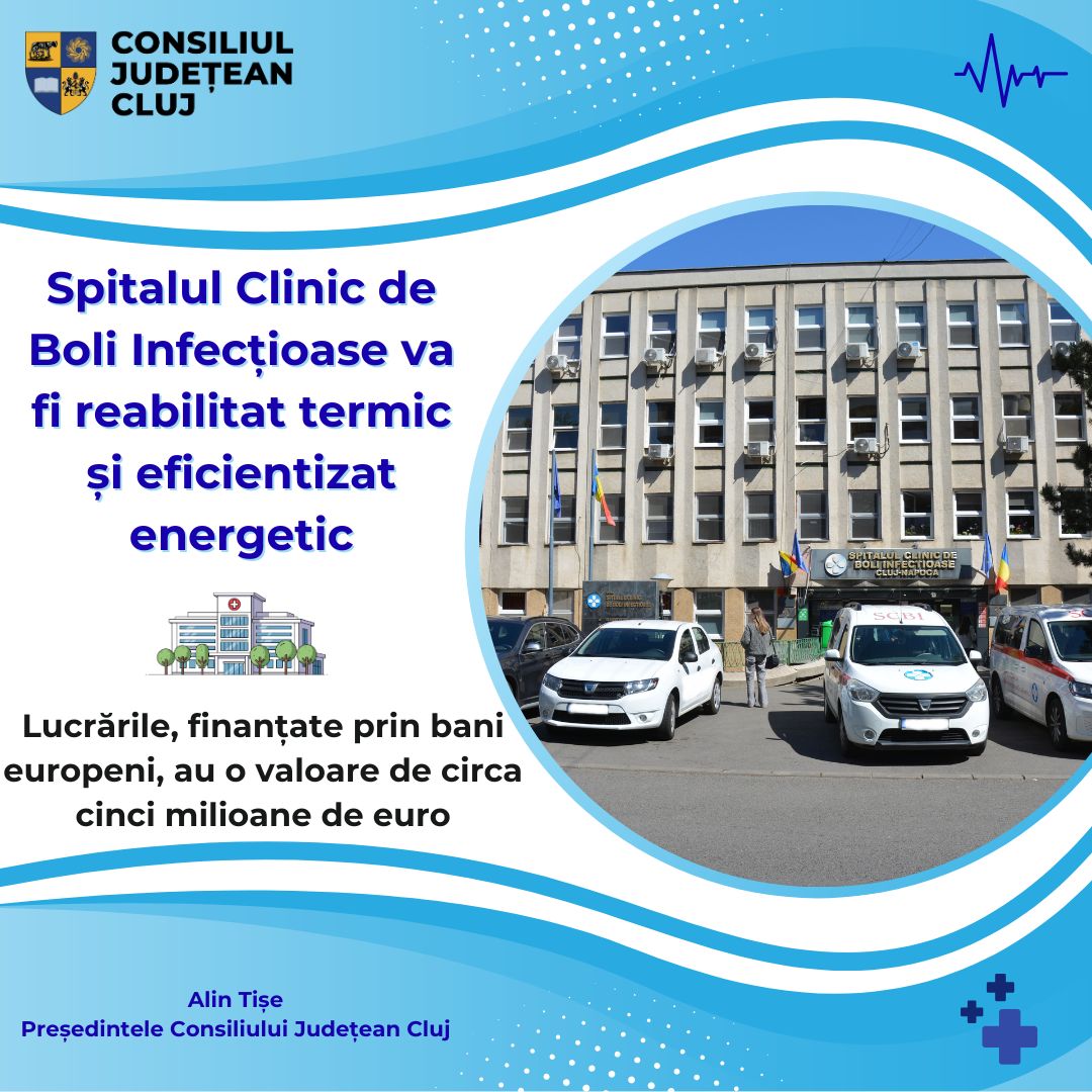 Consiliul Județean Cluj face un nou pas important în direcția modernizării infrastructurii sanitare, prin demararea lucrărilor de reabilitare termică și eficientizare energetică a Spitalului Clinic de Boli Infecțioase, unitate medicală aflată în subordinea administrației județene. Investiția, finanțată din fonduri europene, are o valoare de aproximativ cinci milioane de euro și vizează creșterea calității actului medical, reducerea costurilor de funcționare și îmbunătățirea confortului pentru pacienți și personalul medico-sanitar. În acest sens, […]