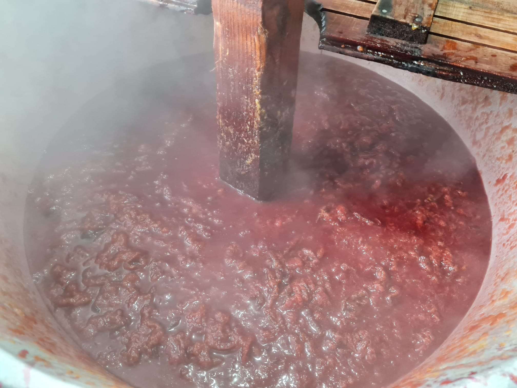 În plin proces de fabricație, cum ar spune industriașii, se afla zacuscă de hribi, vinete și neapărat și cea de fasole. Ne facem comozi și ne retragem pe o bancuță lângă masă și ca să nu pierdem vremea ne transormăm rapid în jurați de emisiuni culinare. Gustăm tot ce prindem pe masă: zacuscă (de toate felurile),murături, dulceață și chiar sâlvoiț, pâine de casă. Ce să vă spun de gust? Gustul copilăriei, gustul de acasă. Bun dom’le, foarte bun ! Mai ales zacusca de hribi, superbă !