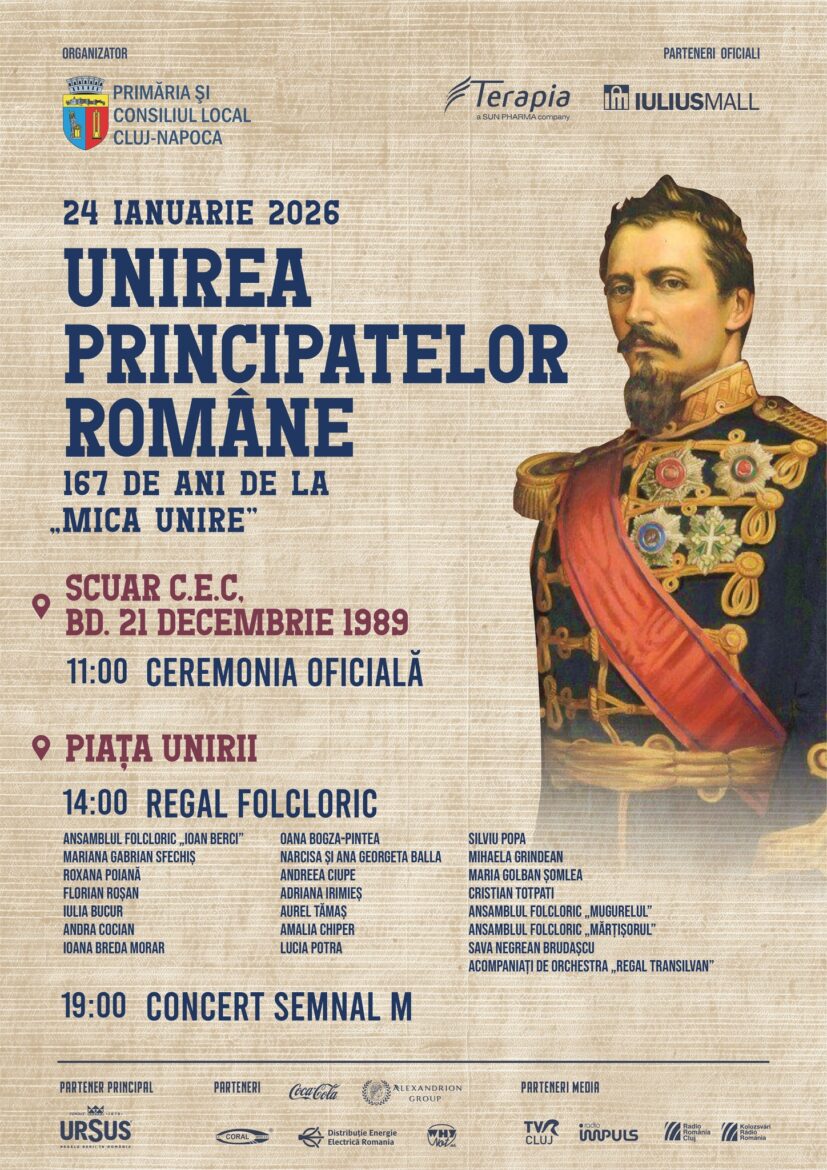 24 ianuarie! Cluj-Napoca celebrează 167 de ani de la Unirea Principatelor Române prin ceremonii oficiale folclor și un concert extraordinar Semnal M sâmbătă