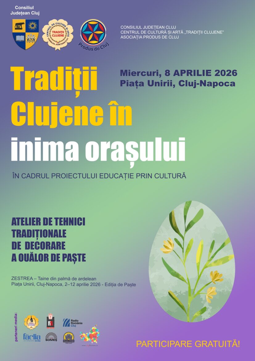 Atelierul face parte din evenimentul mai amplu „Zestrea – Taine din palmă de ardelean”, desfășurat în perioada 2–12 aprilie 2026 în Piața Unirii din Cluj-Napoca. Manifestarea este organizată de Consiliul Județean Cluj, prin Asociația Produs de Cluj, în parteneriat cu Primăria Municipiului Cluj-Napoca.