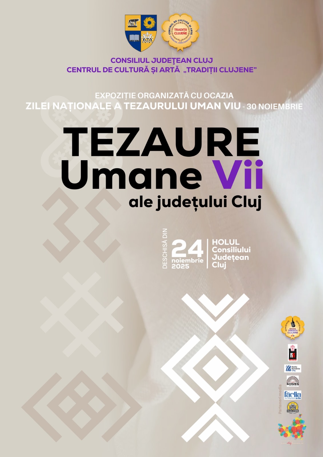 Expoziția, intitulată „Tezaure Umane Vii ale Județului Cluj”, este deschisă publicului în holul Consiliului Județean începând cu 24 noiembrie 2025.