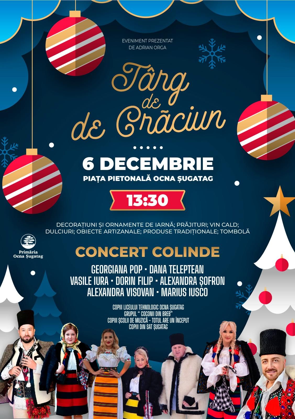 Comuna Ocna Șugatag, Maramureș, se pregătește să deschidă sezonul sărbătorilor de iarnă printr-un eveniment mult așteptat: Târgul de Crăciun și Concertul de Colinde 2025, desfășurate în perioada 5–6 decembrie, pe pietonala din centrul localității. Sub genericul „Magia Crăciunului începe acasă”, întreaga comunitate este invitată să trăiască două zile pline de lumină, tradiție și bucurie.