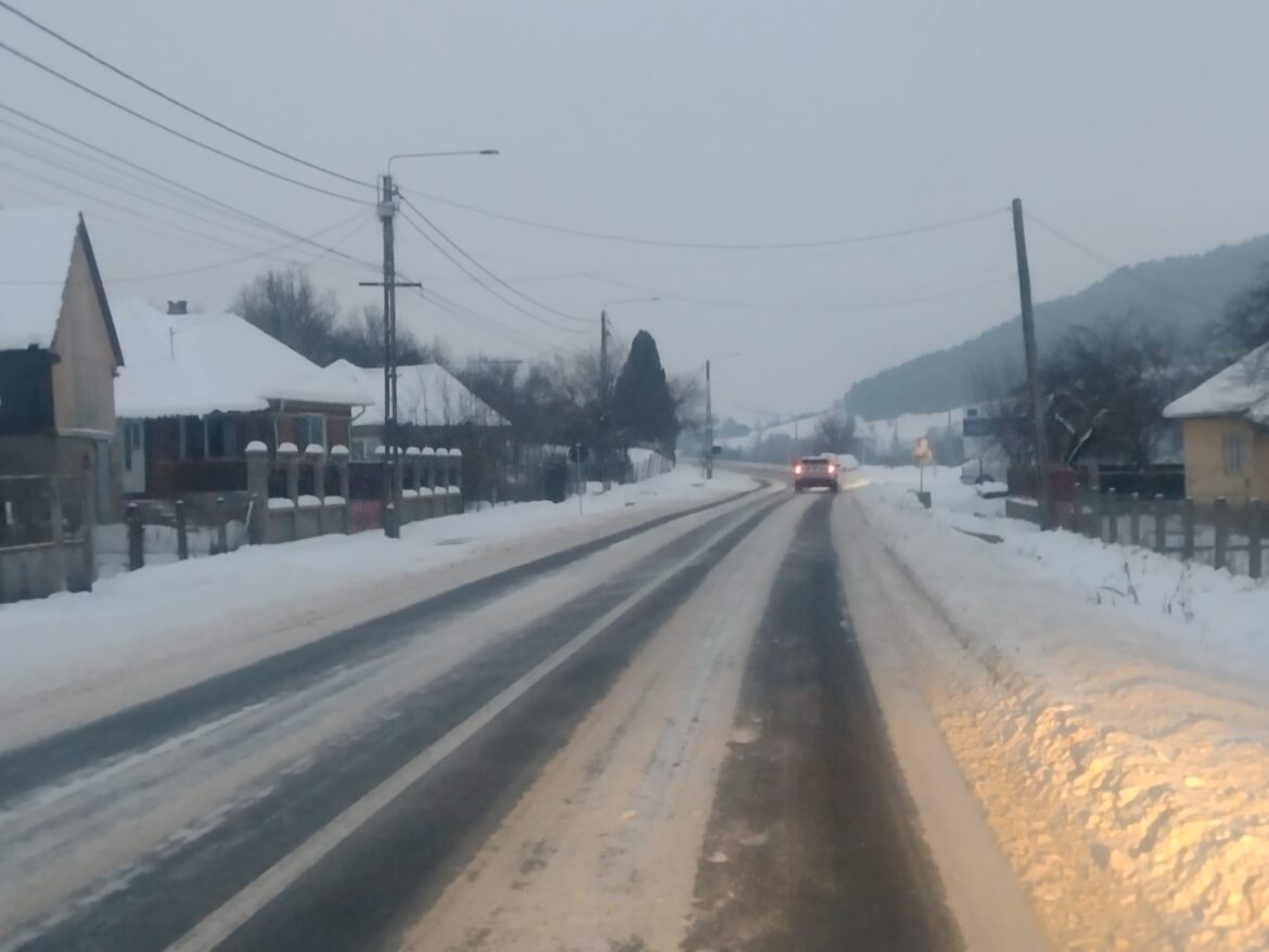 În ultimele 24 de ore s-a intervenit pe 13 drumuri sau sectoare de drumuri județene, cu 9 utilaje, fiind utilizate 136 de tone de material antiderapant.