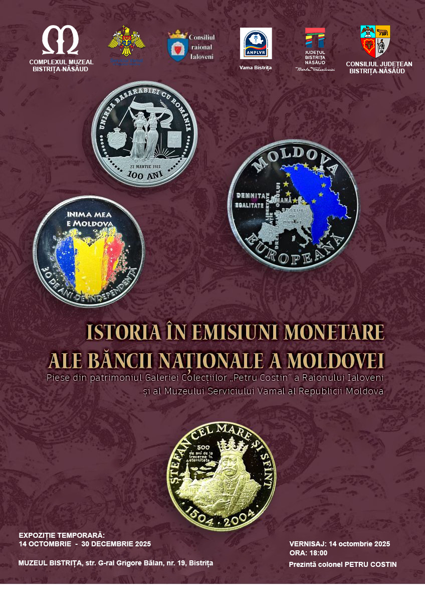 Expoziție internațională la Complexul Muzeal Bistrița-Năsăud: Istoria Republicii Moldova ilustrată prin monede comemorative de aur și argint în perioada 14 octombrie-30 decembrie!