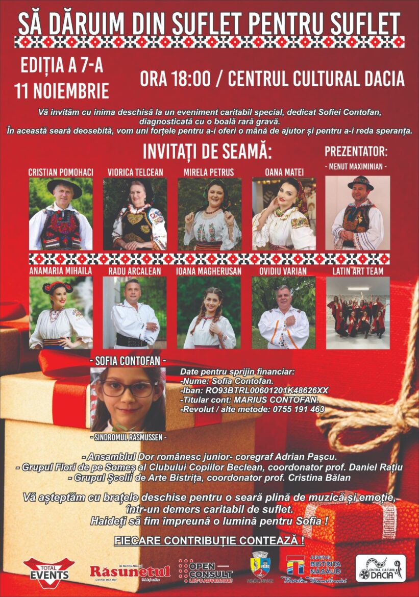 Organizat cu implicarea Consiliului Județean Bistrița-Năsăud, a Centrului Cultural „Dacia” și a mai multor parteneri locali, evenimentul este un apel la solidaritate, generozitate și iubire față de aproapele nostru.