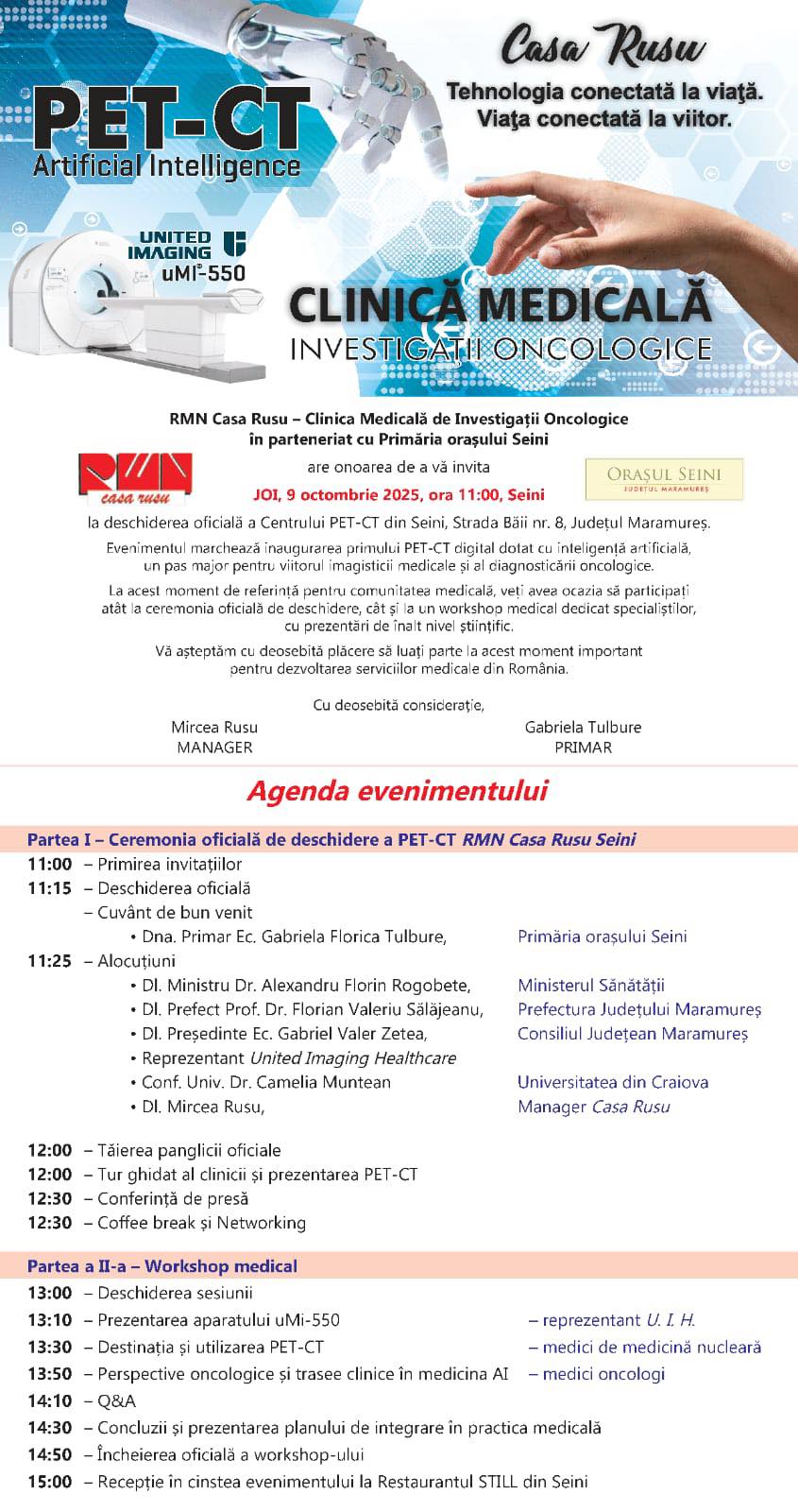 „Vă invit cu drag la un moment cu adevărat important pentru comunitatea noastră: inaugurarea celui mai performant PET-CT din România, un pas mare pentru sănătatea tuturor! Haideți să arătăm că împreună putem construi o comunitate mai sănătoasă!”, a declarat doamna primar Gabriela Tulbure.