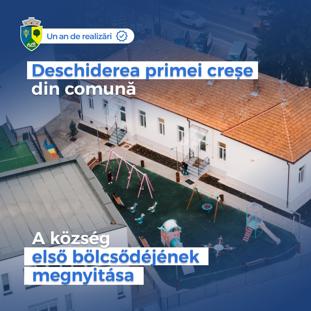 Printre aceste proiecte se numără deschiderea primei creșe din comuna Baciu, un proiect mult așteptat de părinți. Noua creșă funcționează în fosta grădiniță de pe strada Transilvaniei, complet modernizată și adaptată nevoilor celor mici. Aceasta include două grupe, una cu predare în limba română și una mixtă, unde este prezentă în permanență o educatoare sau o îngrijitoare pentru copiii maghiari.