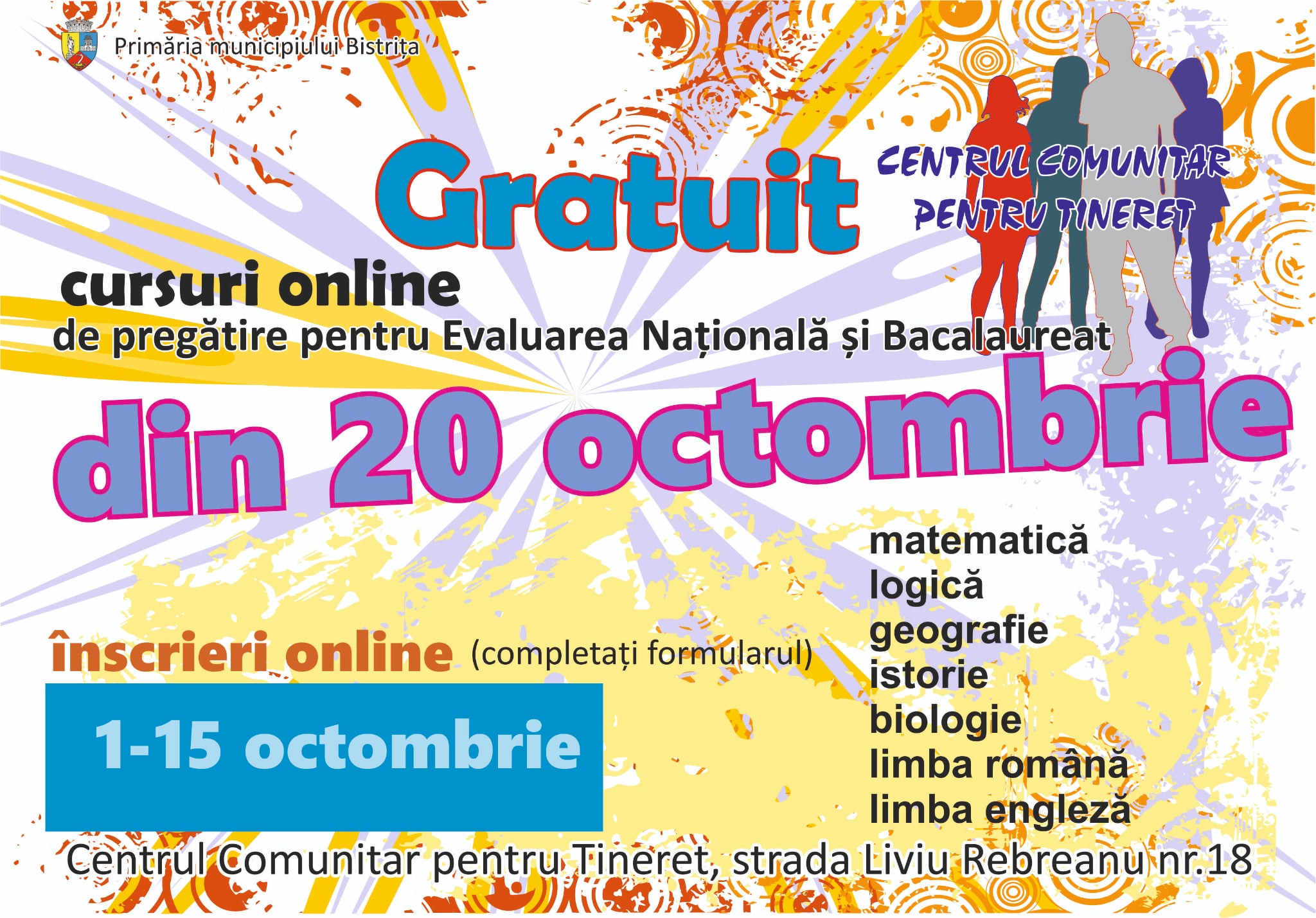 Înscrierile sunt deschise până pe 15 octombrie. Nu rata șansa de a învăța eficient, gratuit și organizat, cu sprijinul Primăriei Bistrița!