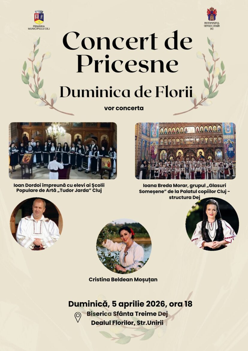 Sărbătoarea Floriilor, care marchează intrarea triumfală a Mântuitorului în Ierusalim, are o semnificație profundă în tradiția creștin-ortodoxă, fiind punctul de început al Săptămânii Mari. Prin organizarea acestui concert, Primăria Dej și Protopopiatul Ortodox își doresc să aducă mai aproape de oameni această însemnătate, consolidând legătura între spiritualitate și viața cotidiană.