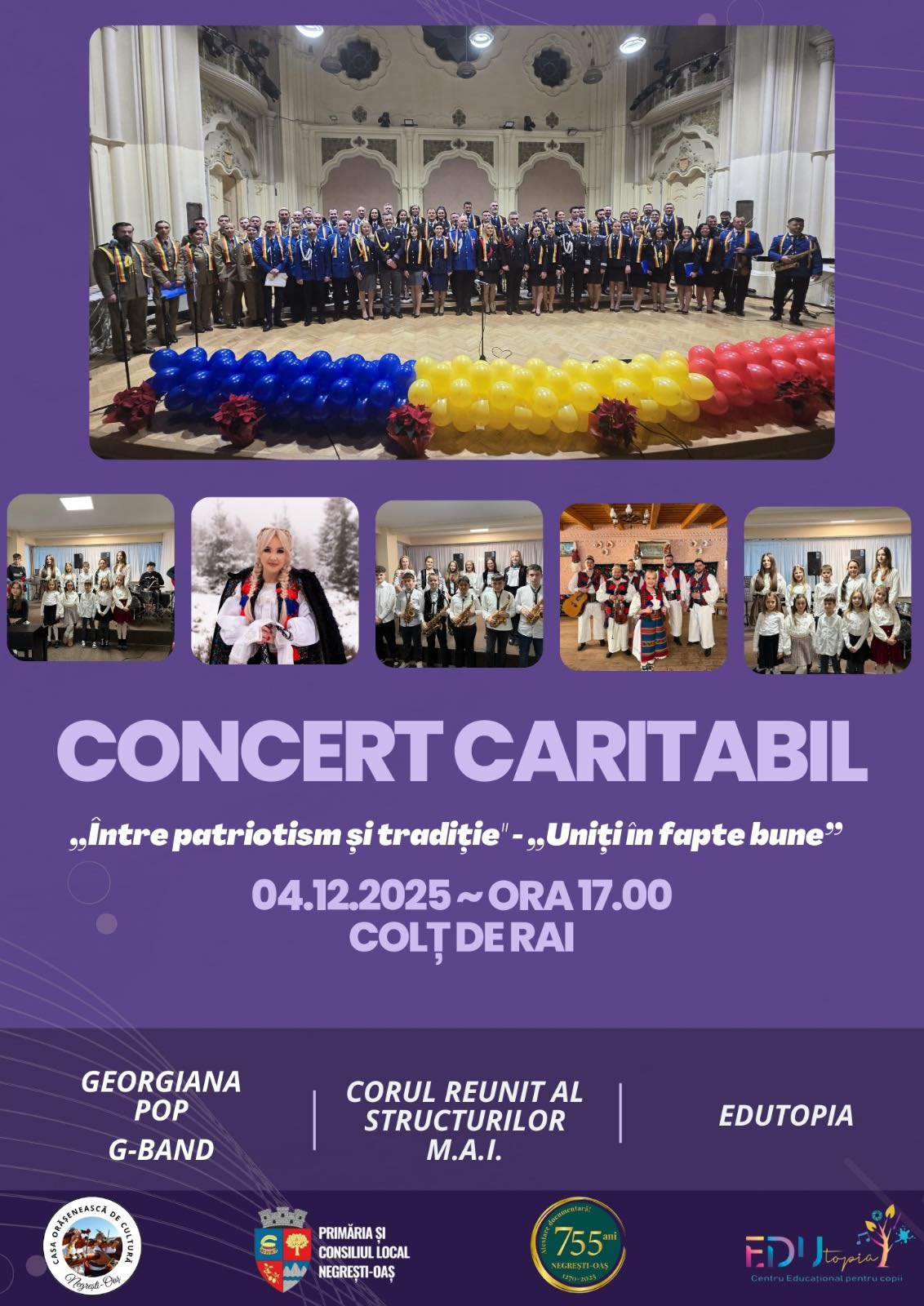 Programat pentru 4 decembrie 2025, ora 17.00, în fermecătorul spațiu Colț de Rai, concertul își propune să aducă împreună comunitatea, într-o seară dedicată faptelor bune, culturii autentice și respectului față de valorile naționale.