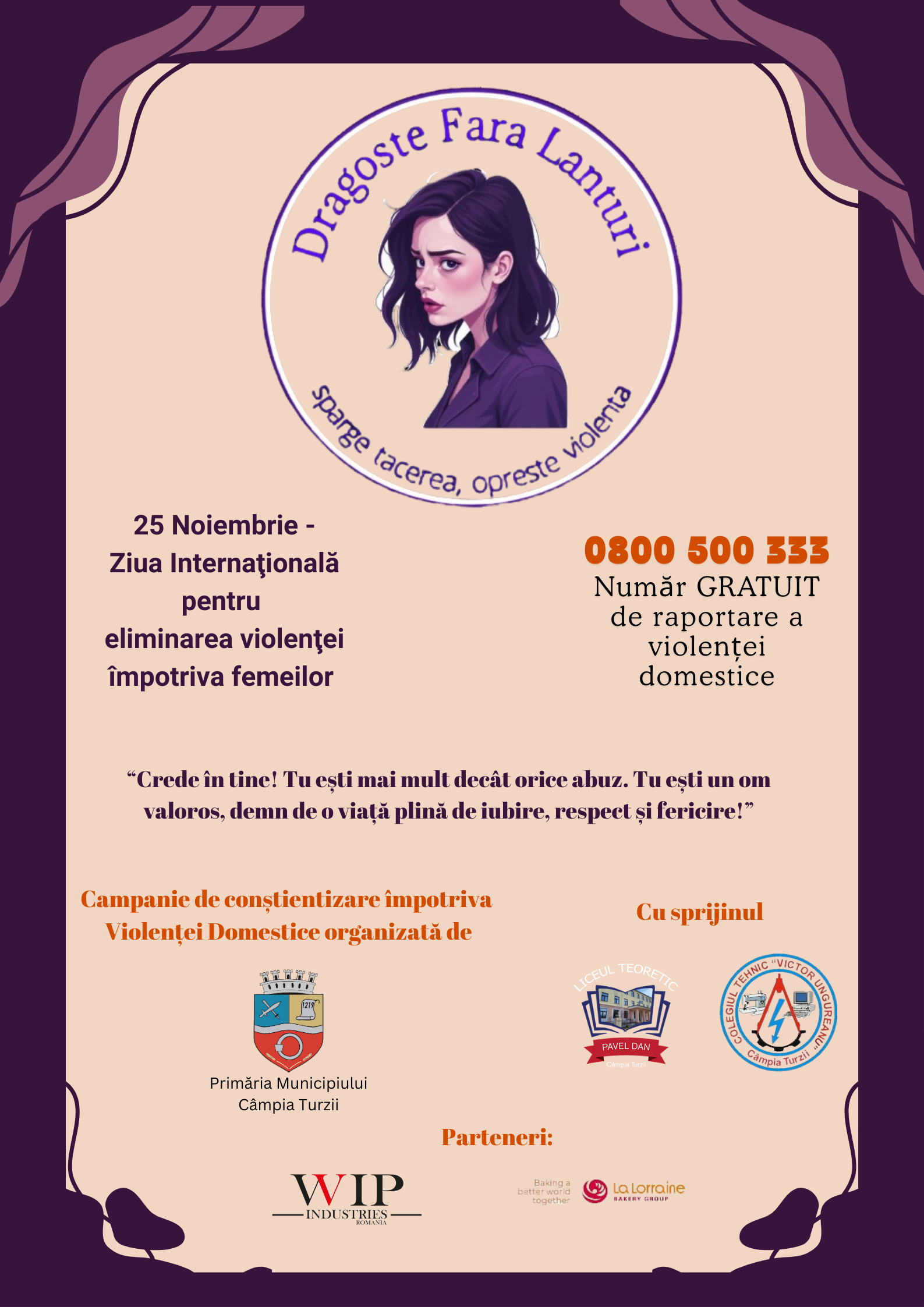 Violența nu își are locul printre noi, iar împreună putem construi o societate mai bună. Mulțumiri sincere pentru WIP Industries și La Lorraine România, care au contribuit semnificativ la susținerea și diseminarea acestei campanii!”, a declarat domnul primar.
