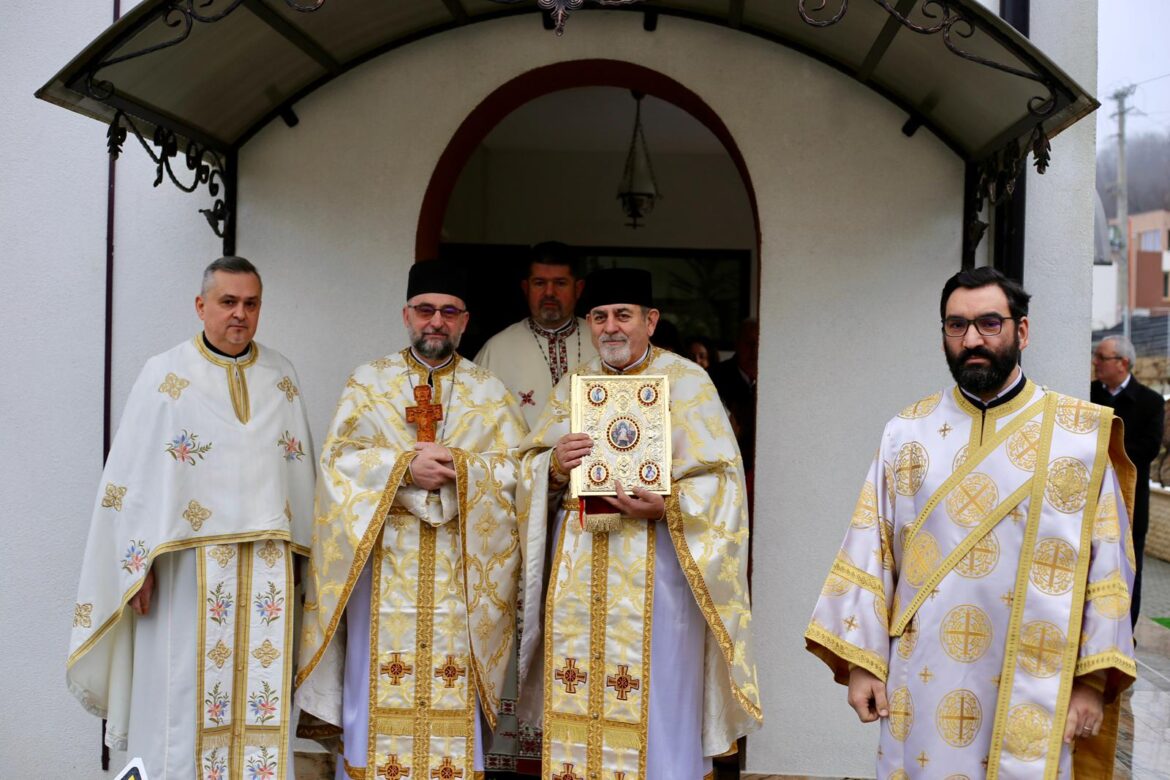 Sfânta și Dumnezeiasca Liturghie a fost oficiată de la ora 10:00, în sobor de clerici, iar răspunsurile liturgice au fost oferite de doamnele profesoare Maria Bob și Petronela Taloș, împreună cu credincioșii prezenți.